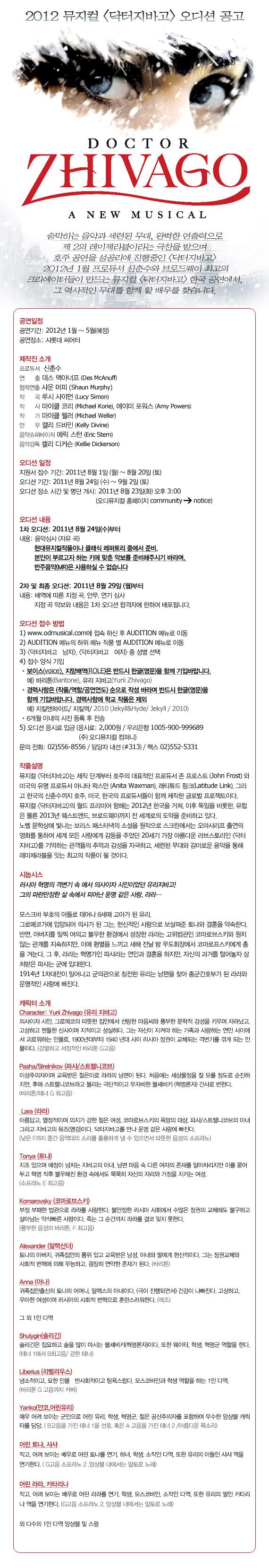 【2011.11.18】【音樂】朱智勳憑藉音樂劇《日瓦戈醫生》復出