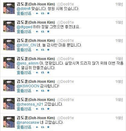 金度勳導演耐心地回复每一位粉絲。感激,謝謝,是金導演回复粉絲們的主旋律。因為回复很多,只能列舉金導演的部分回复: