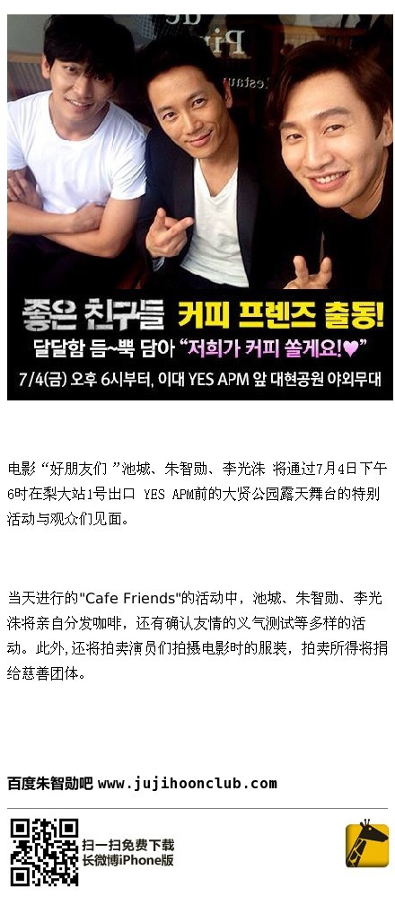 [消息]주지훈~《好朋友們》(좋은 친구들)7/4下午6時"Cafe Friends"活動